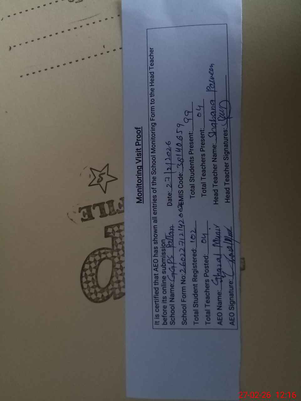 | EMIS Code: 38140659 | Name of School: GGPS PATTAN | |||