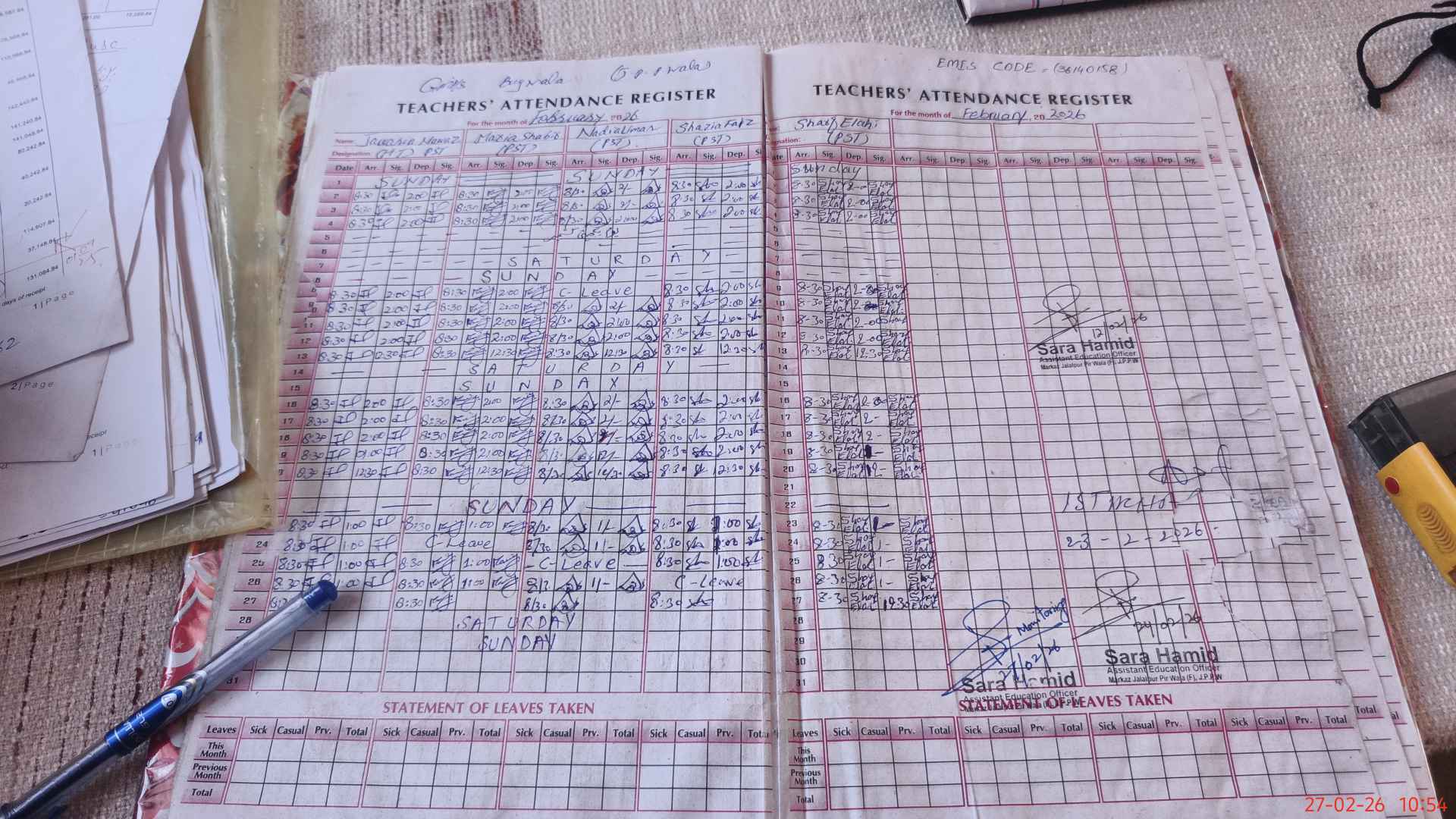 | Attendance Register | Head Teacher | MEA with School | Visit Proof |