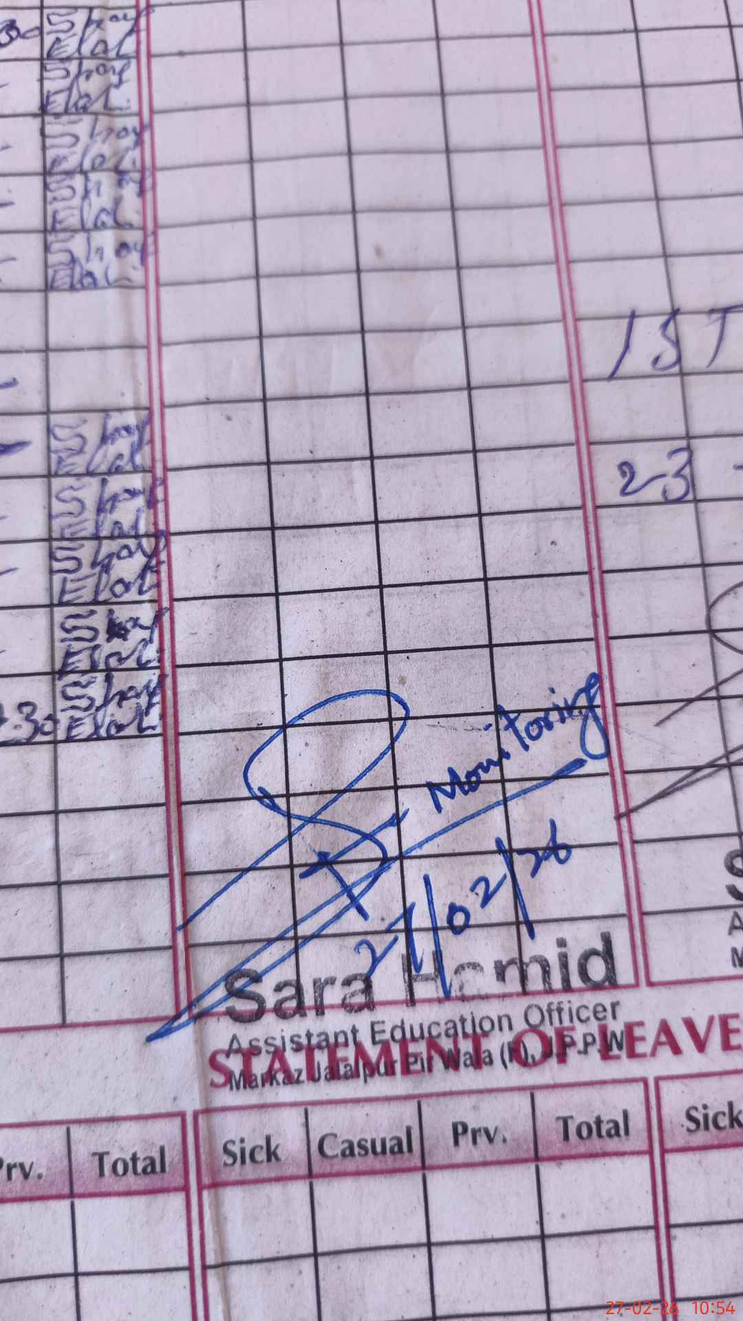 | Monitoring Date: 27-02-2026 | Start Time: 27-02-2026 10:51 AM | End Time: 27-02-2026 10:56 AM | Name of MEA: Sa**** Ha**** | |