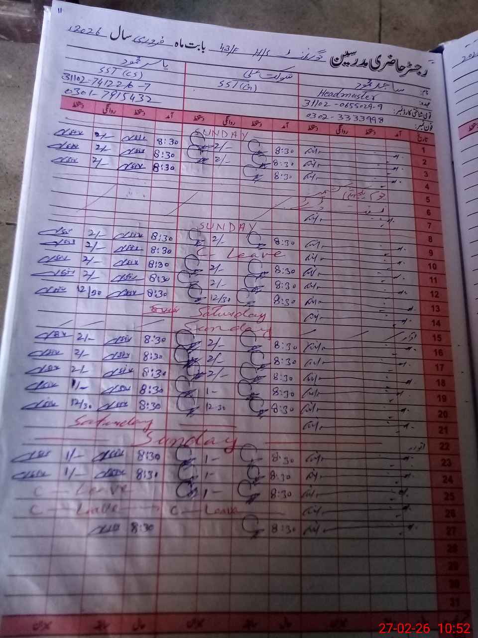 | Name: SA**** MA**** Designation: (School Headmaster's/Headmistress's) HM Phone/Cell Number: 03**** |
