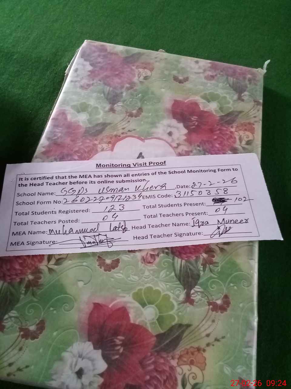 | EMIS Code: 31150358 | Name of School: GGPS USMAN KHARA | |||