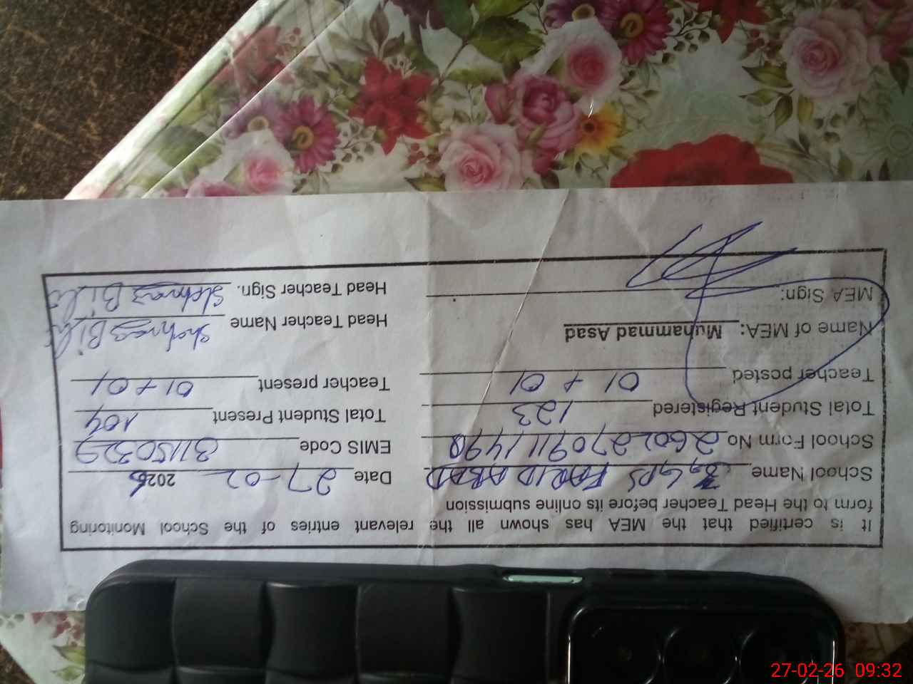 | Name: SH**** BI**** Designation: (School Headmaster's/Headmistress's) PST Phone/Cell Number: 03**** |
