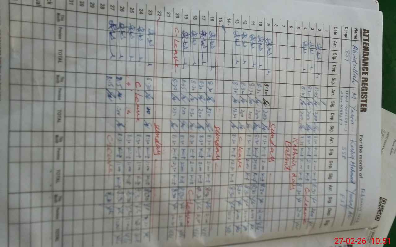 | 35**** | Mu**** Ah**** Kh**** | EST Science | Regular | 0 | 0 | 31 | 0 | 0 | 0 | 0 | 0 | 0 | Absent (Un-Authorized) |
