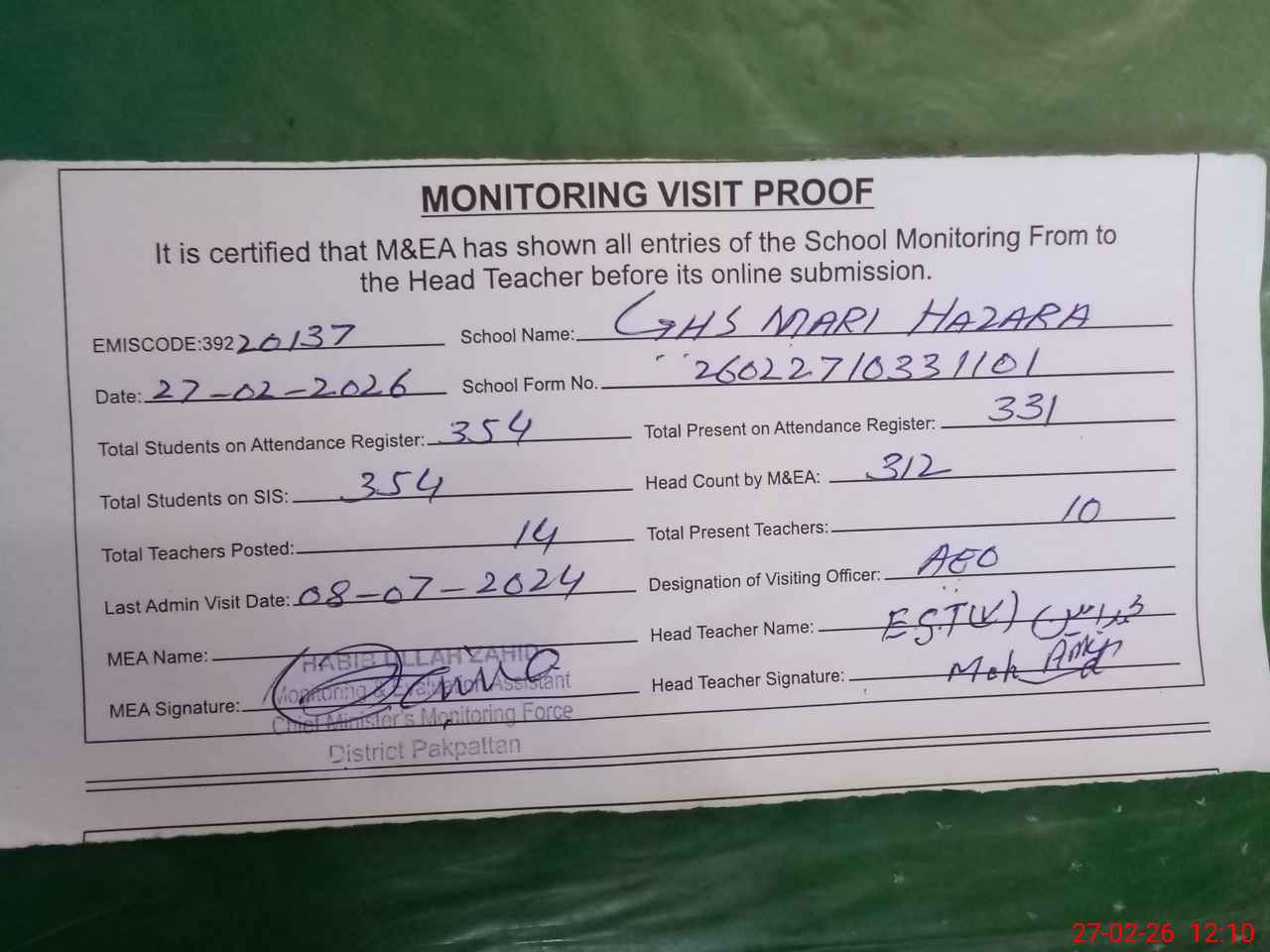 | EMIS Code: 39220137 | Name of School: GHS MARI HAZARA | |||