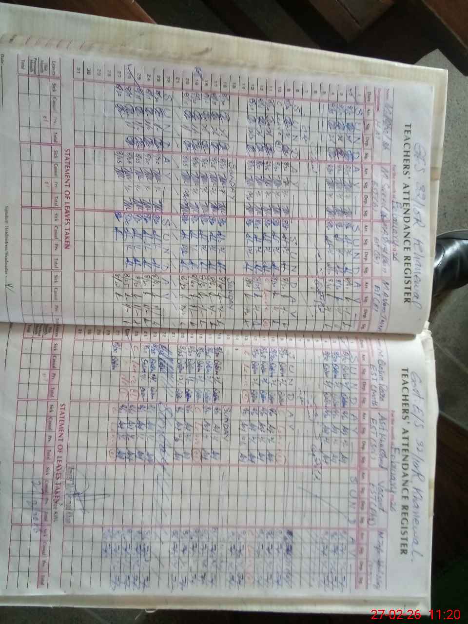 | Leave | Duty | Absent | Maternity | Medical | Ex- Pak |