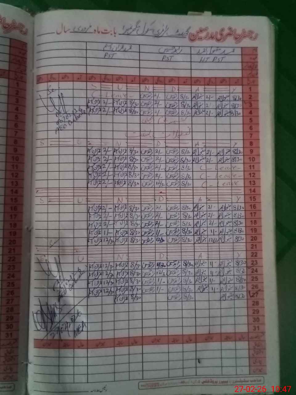 | Name: MU**** MA**** AH**** Designation: (School Headmaster's/Headmistress's) PST Phone/Cell Number: 03**** |