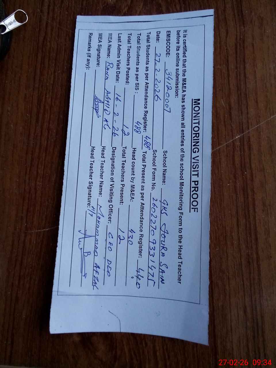 | EMIS Code: 34120007 | Name of School: GHS JOURA SIAN | |||