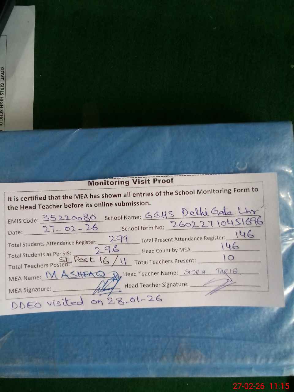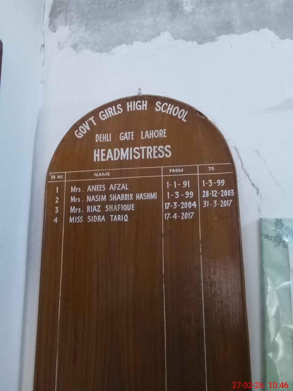 | EMIS Code: 35220080 | Name of School: GGHS DELHI GATE LAHORE | |||