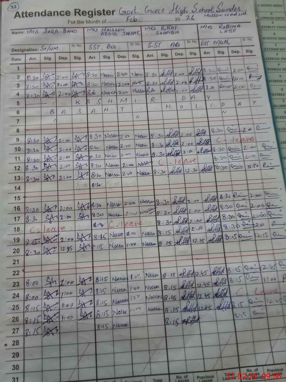 | Name: Sa**** Ba**** Designation: (School Headmaster's/Headmistress's) Senior Head Mistress Phone/Cell Number: 03**** |