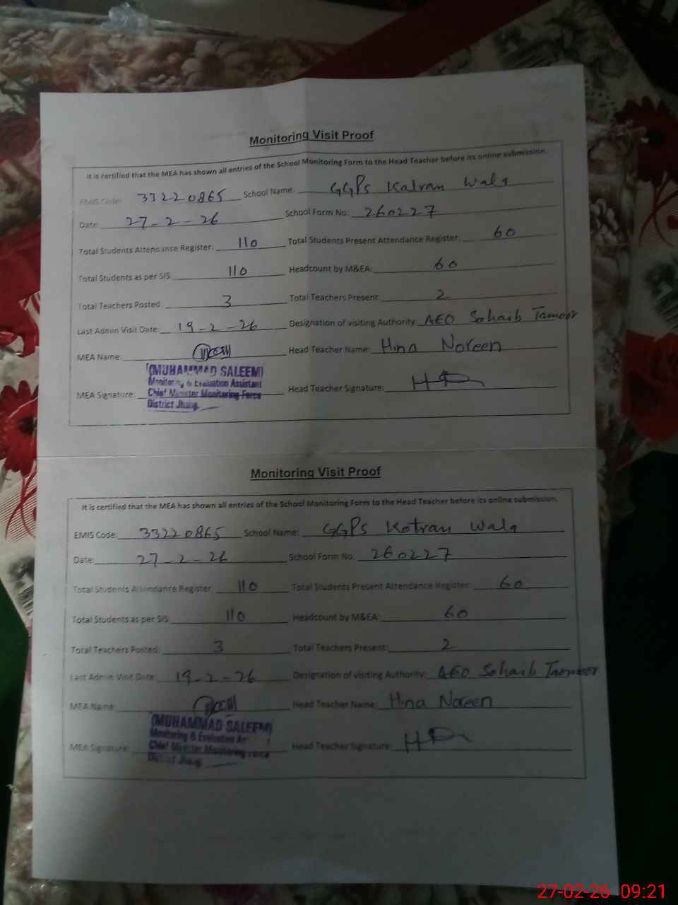 | EMIS Code: 33220865 | Name of School: GGPS KOTRAN WALA | |||
