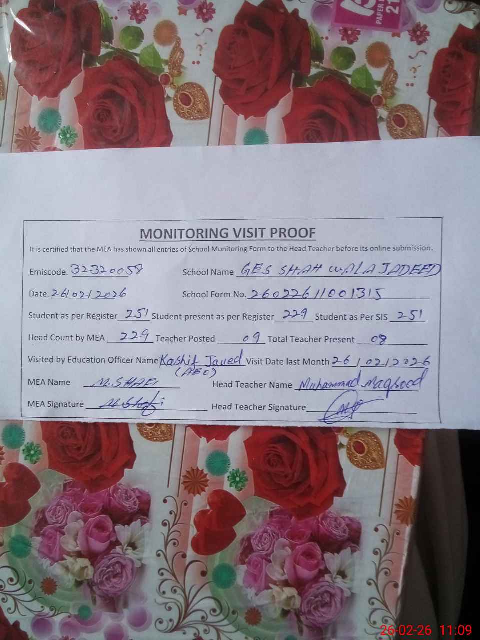 | EMIS Code: 32320058 | Name of School: GES SHAH WALA JADEED | |||