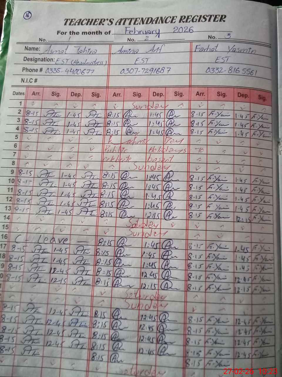 | Name: As**** Ta**** Designation: (School Headmaster's/Headmistress's) EST Phone/Cell Number: 03**** |