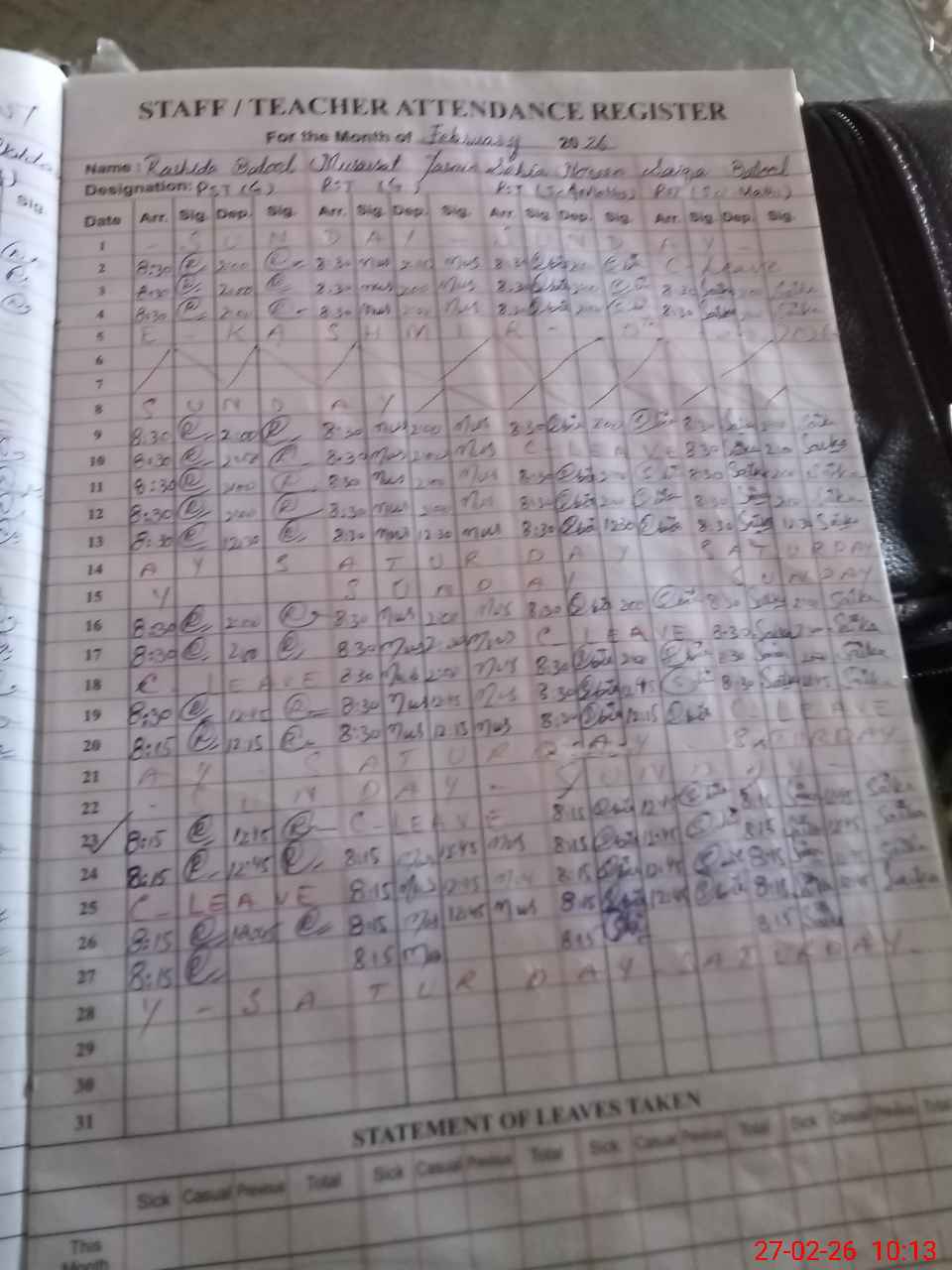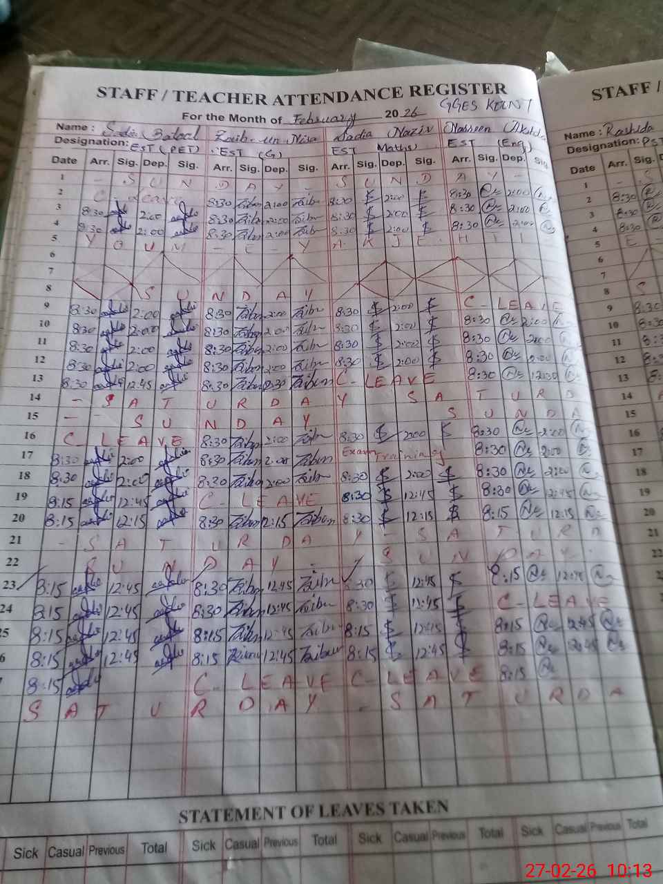 | 37**** | Za**** | EST General Arts | Regular | 0 | 0 | 0 | 0 | 0 | 0 | 0 | 0 | 0 | Casual |