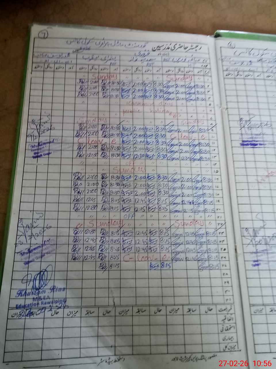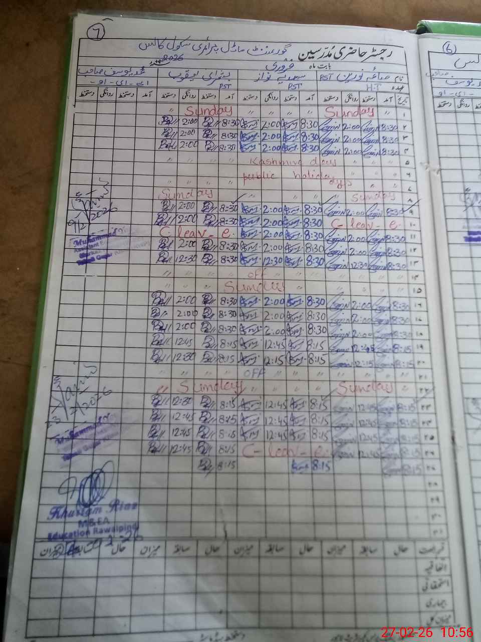 | CNIC | Full Name | Designation | R/C | Absence During Last Calender Month |