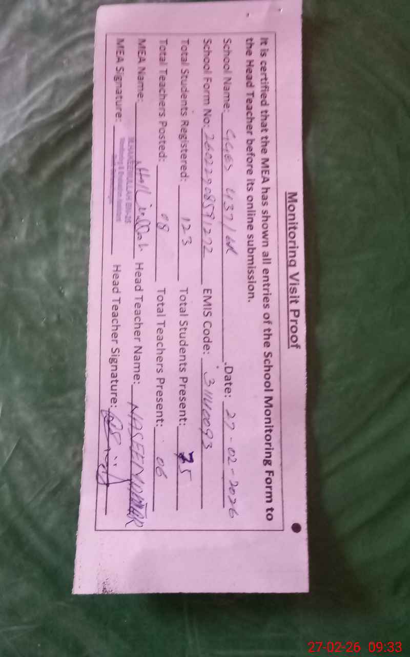 | EMIS Code: 31140093 | Name of School: GGES CHAK 437/6-R | |||