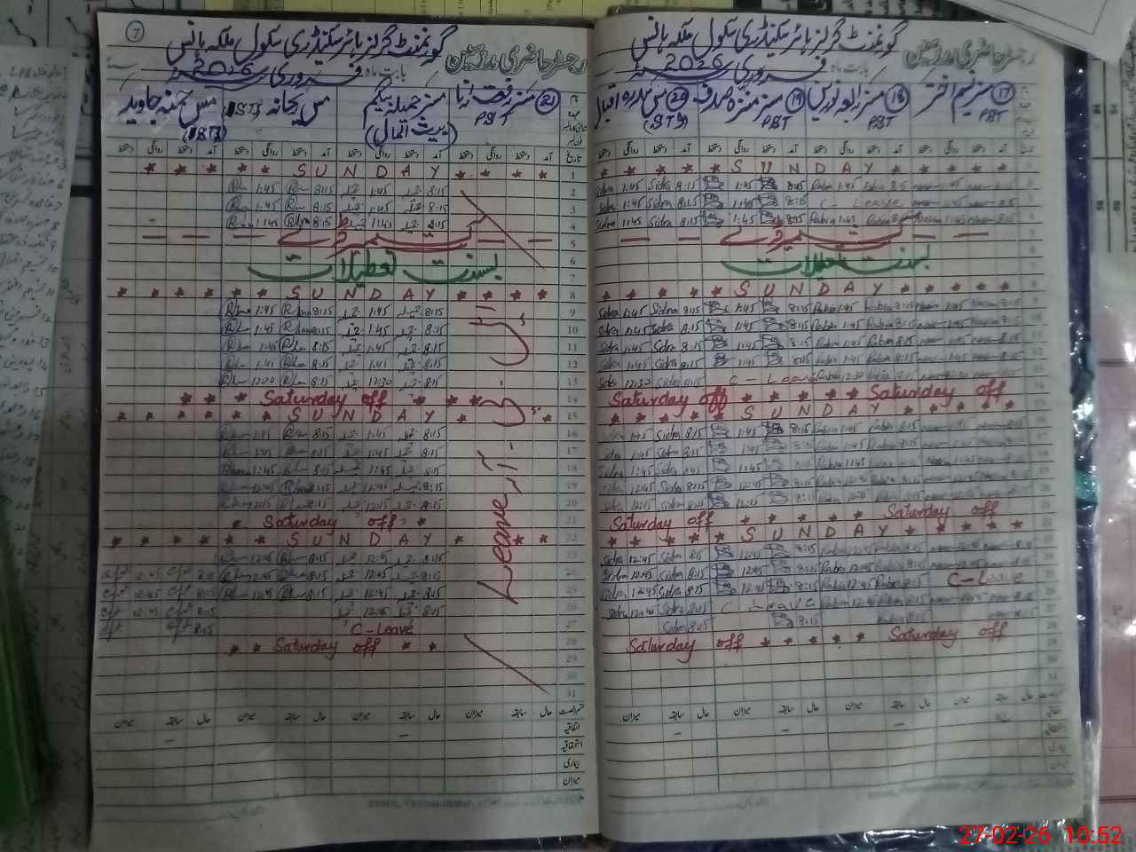 | Leave | Duty | Absent | Maternity | Medical | Ex- Pak |