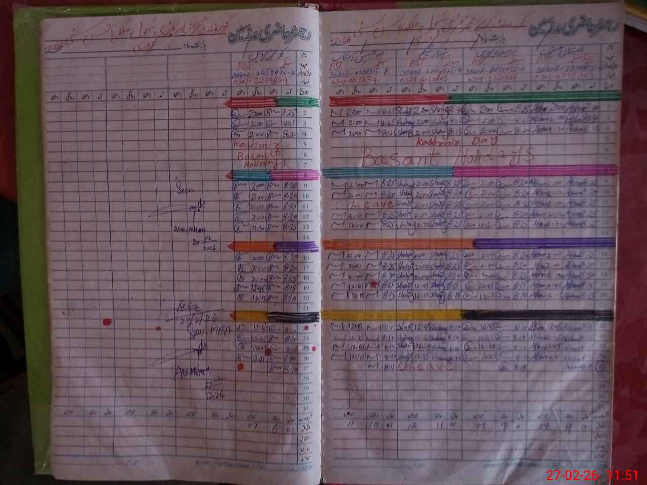 | CNIC | Full Name | Designation | R/C | Absence During Last Calender Month |