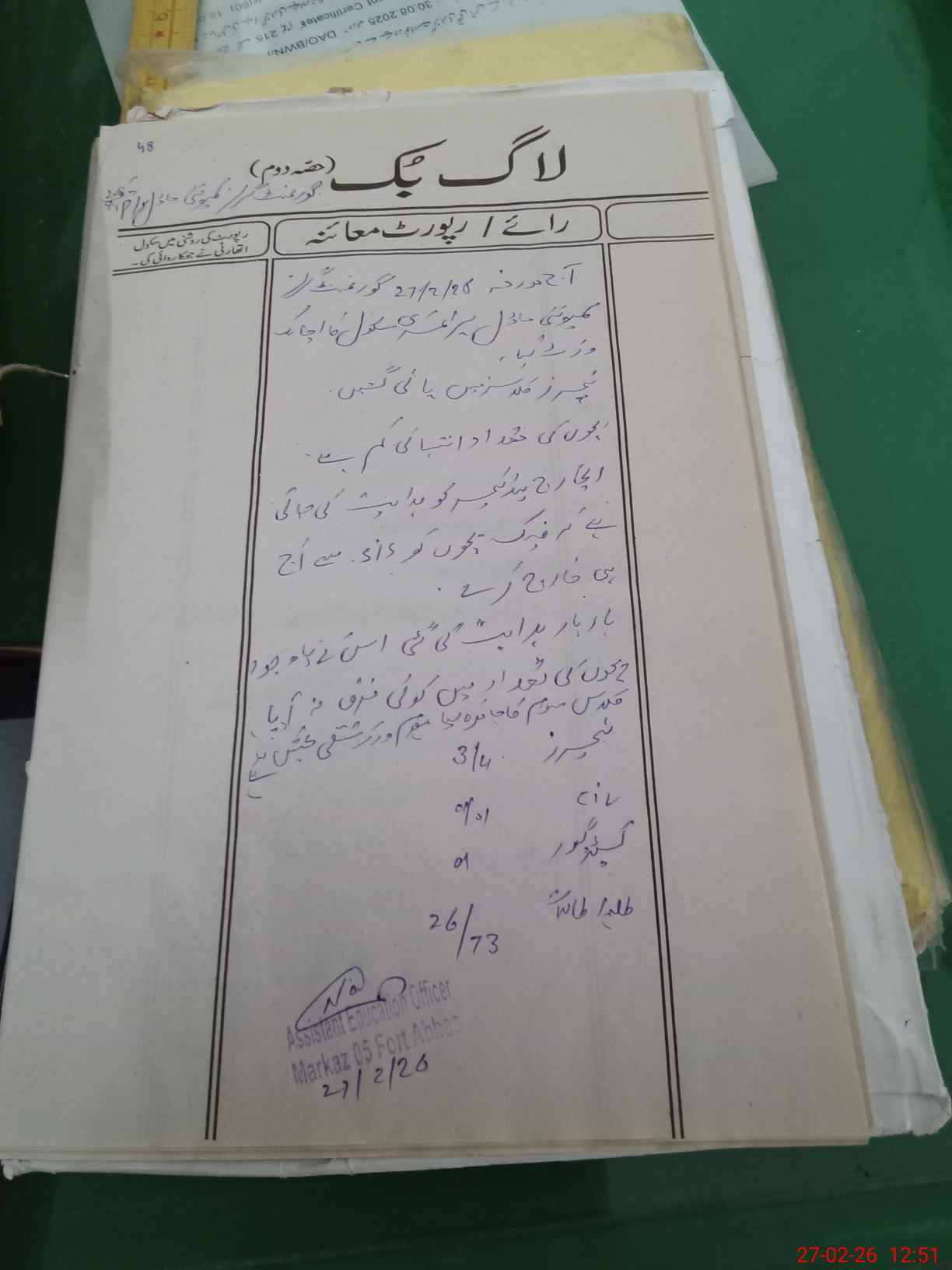 | Remarks (Use Separate Page if Required): very low student attendance, there is a dangerous building present,need to demolish it promptly. | |||||