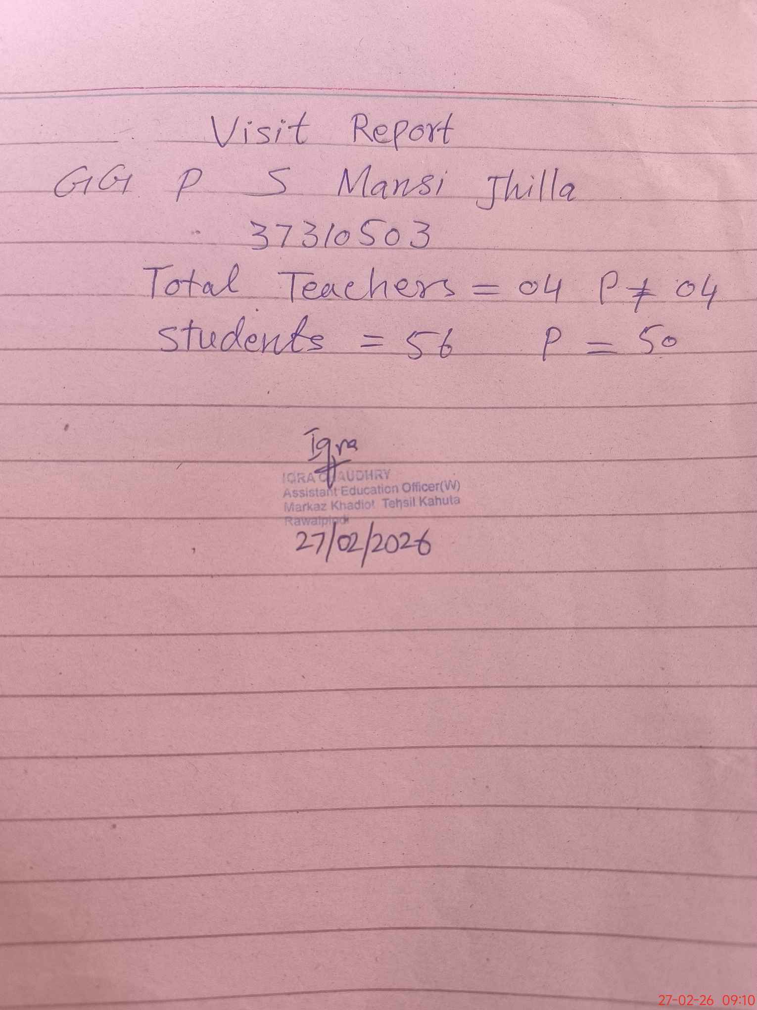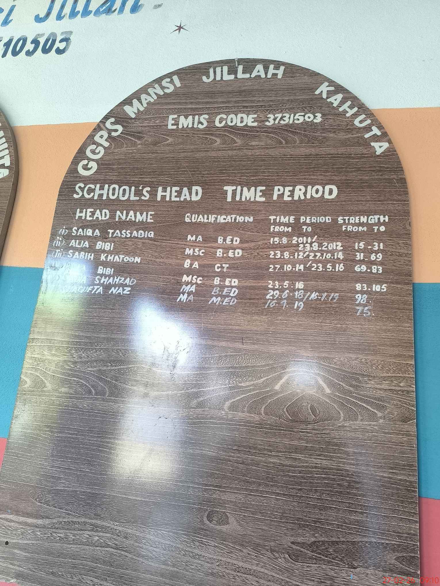 | EMIS Code: 37310503 | Name of School: GGPS MASI JILLA | |||