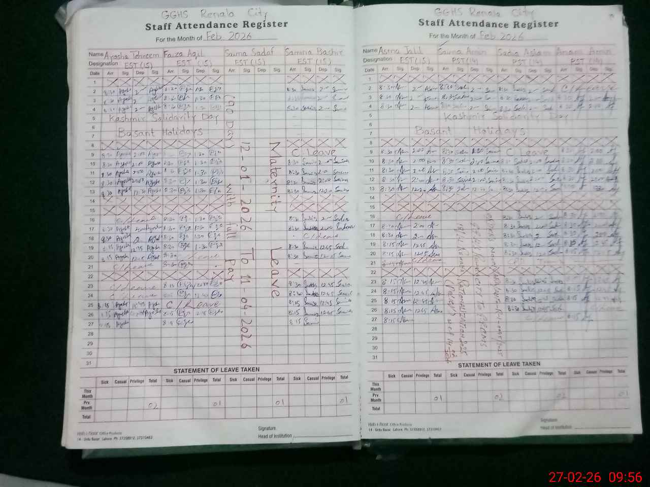 | 36**** | Hi**** Sh**** Ra**** | PST | Regular | 31 | 0 | 0 | 31 | 0 | 0 | 0 | 0 | 0 | Maternity |