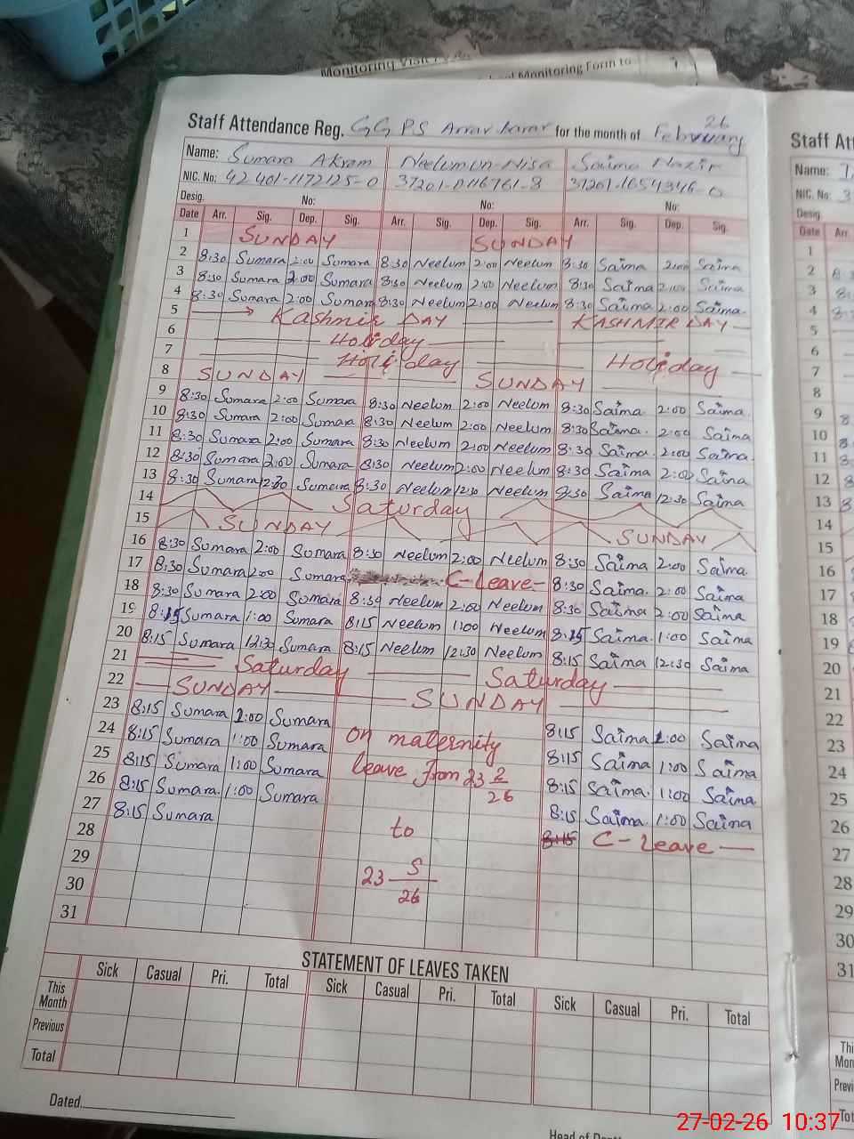 | 37**** | Sa**** Na**** | PST Arts | Regular | 0 | 0 | 0 | 0 | 0 | 0 | 0 | 0 | 0 | Casual |