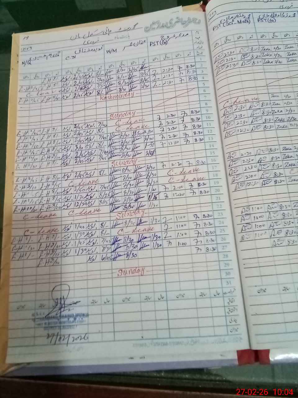 | Leave | Duty | Absent | Maternity | Medical | Ex- Pak |