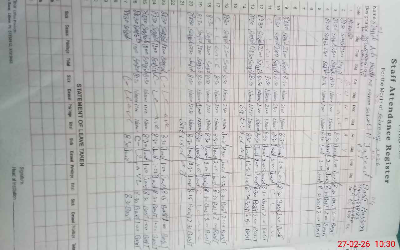 | Name: SA**** AL**** Designation: (School Headmaster's/Headmistress's) PST Phone/Cell Number: 03**** |