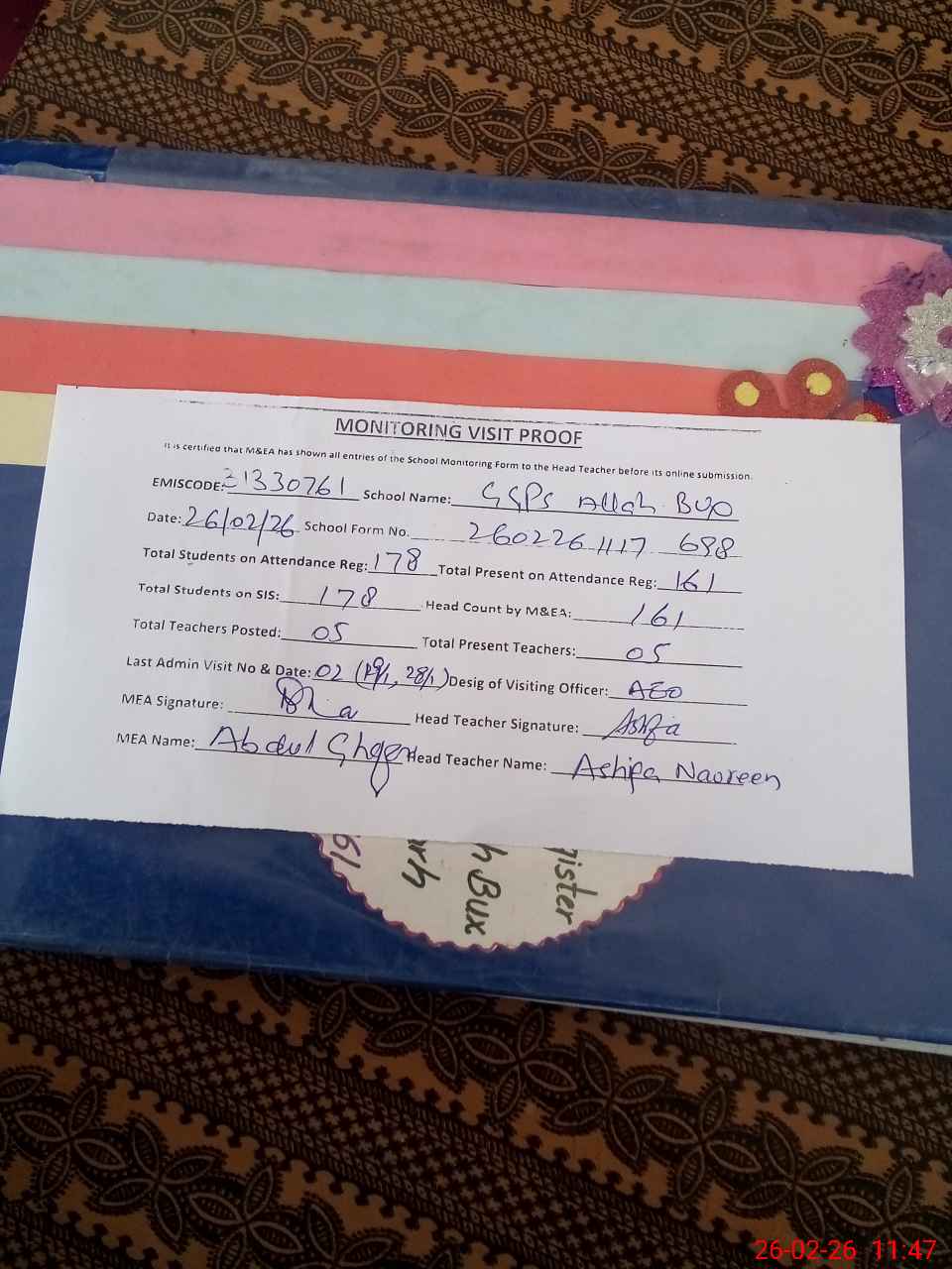 | EMIS Code: 31330761 | Name of School: GGPS BASTI ALLAH BAKSH | |||