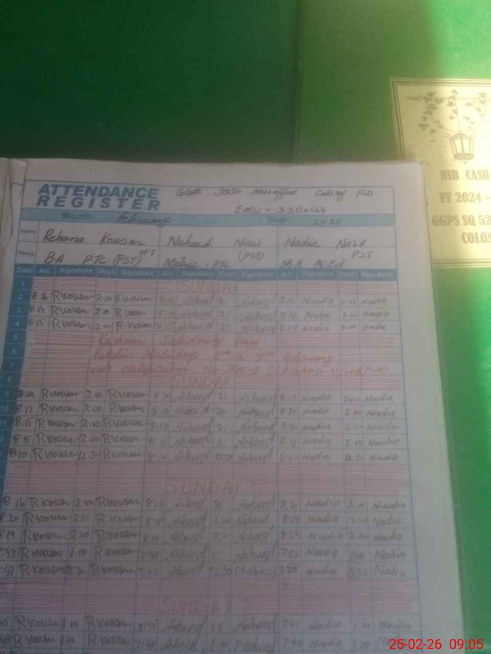 | Monitoring Date: 25-02-2026 | Start Time: 25-02-2026 08:30 AM | End Time: 25-02-2026 09:08 AM | Name of MEA: KA**** AL**** | |