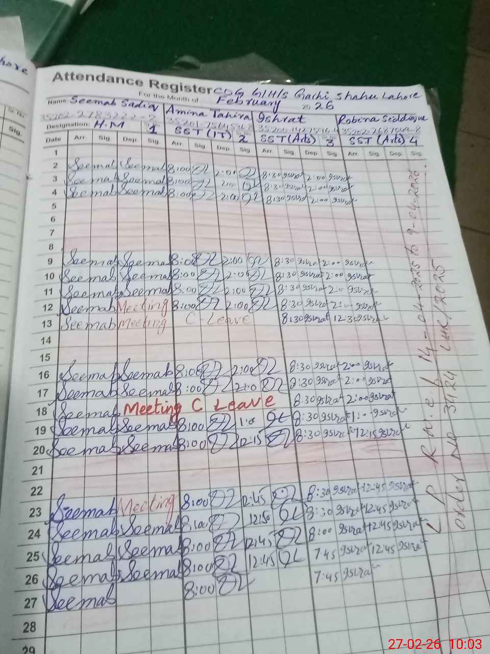 | 31**** | Ir**** Ta**** | PST Science/Maths | Regular | 0 | 0 | 0 | 0 | 0 | 0 | 0 | 0 | 0 | Casual |