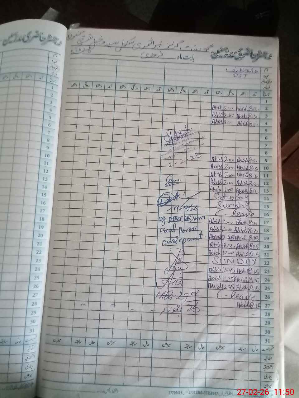 | CNIC | Full Name | Designation | R/C | Absence During Last Calender Month |