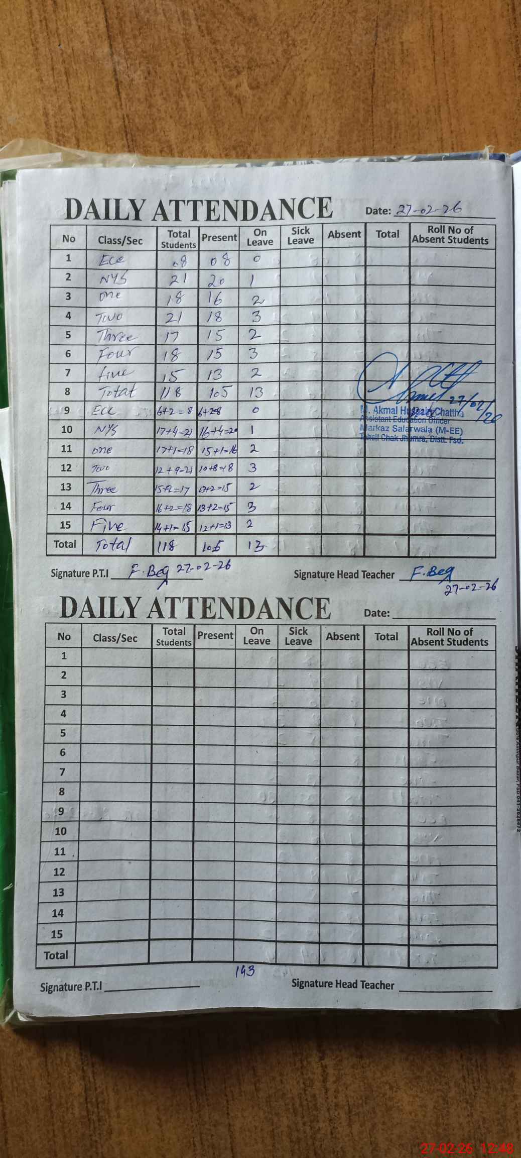 | Attendance Register | Head Teacher | MEA with School | Visit Proof |