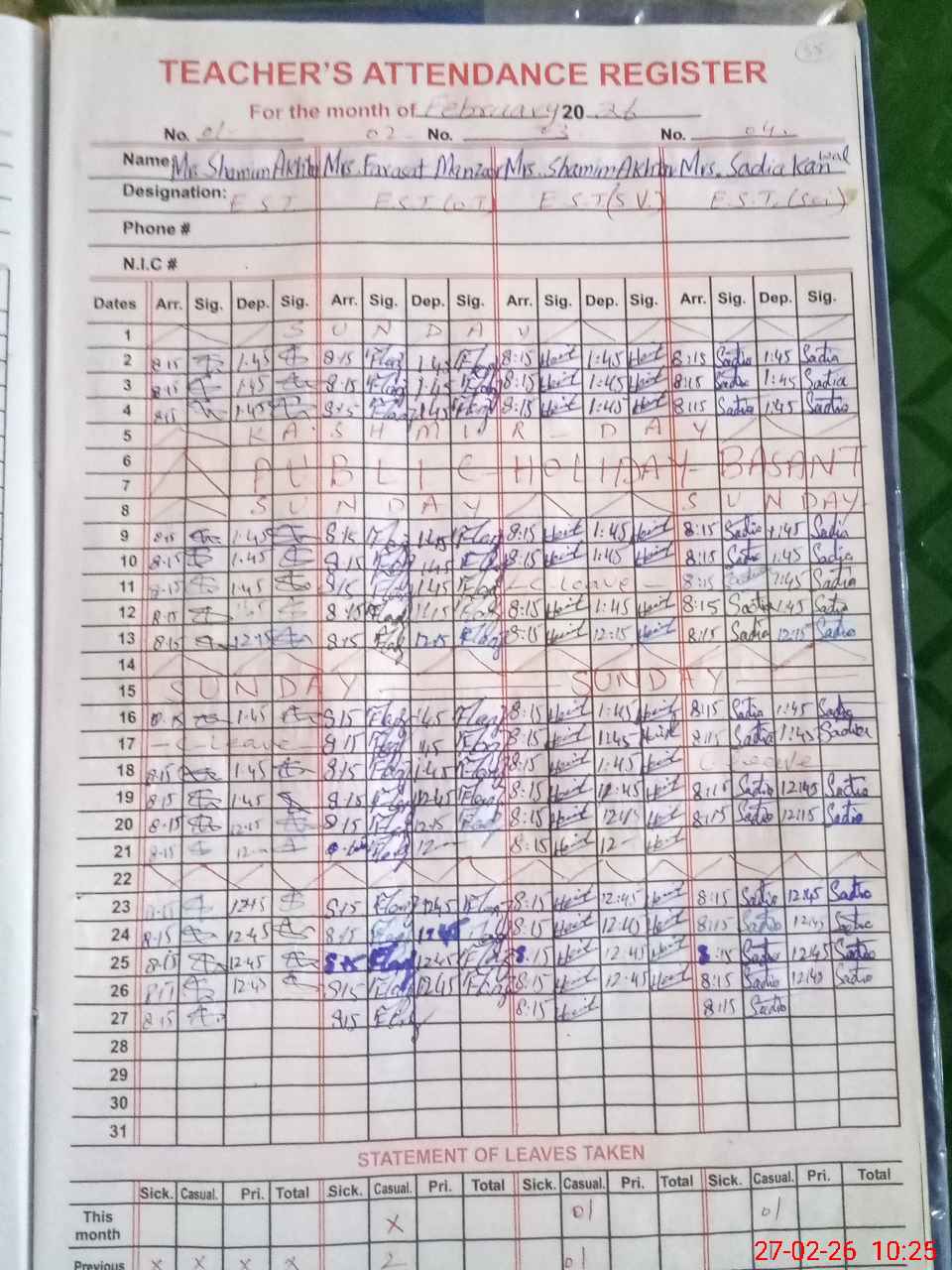 | 33**** | Na**** Ak**** | PST Arts | Regular | 0 | 0 | 0 | 0 | 0 | 0 | 0 | 0 | 0 | Casual |