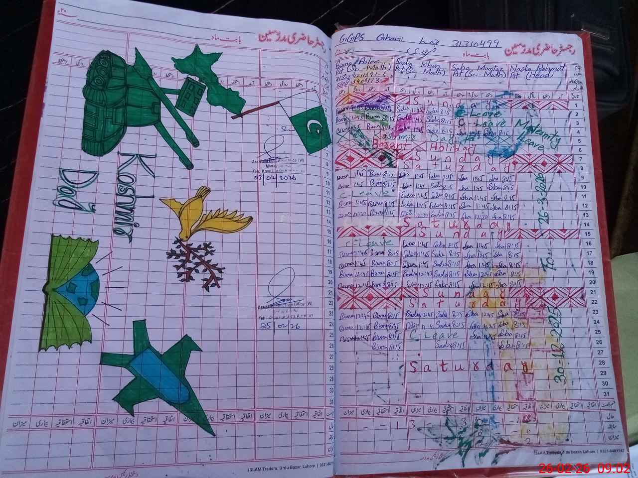 | Total no. of Classrooms: 3 No. of Classrooms Used for Teaching: 2 No. of Classrooms Storing Old Furniture, FTBs, etc: 0Comments if Any: Satisfactory Books record not available at school NSB record cash Book not available at school cash book at PST Nadia Rehmat house |