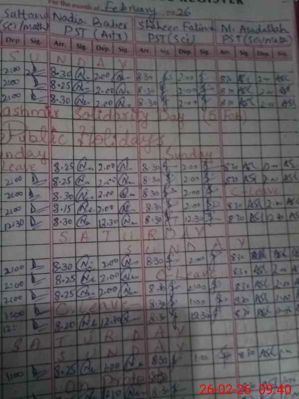 | Monitoring Date: 26-02-2026 | Start Time: 26-02-2026 09:25 AM | End Time: 26-02-2026 09:53 AM | Name of MEA: Ab**** Ha**** | |