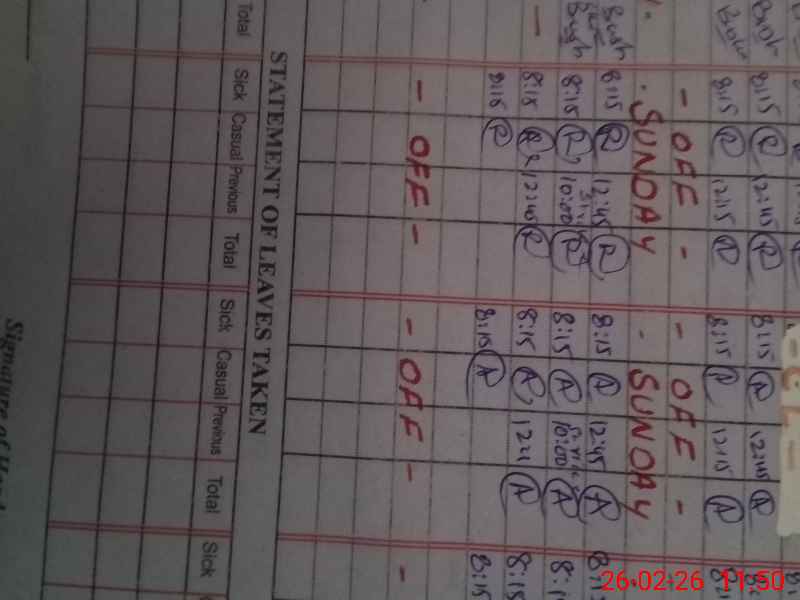 | CNIC | Full Name | Designation | R/C | Absence During Last Calender Month |
