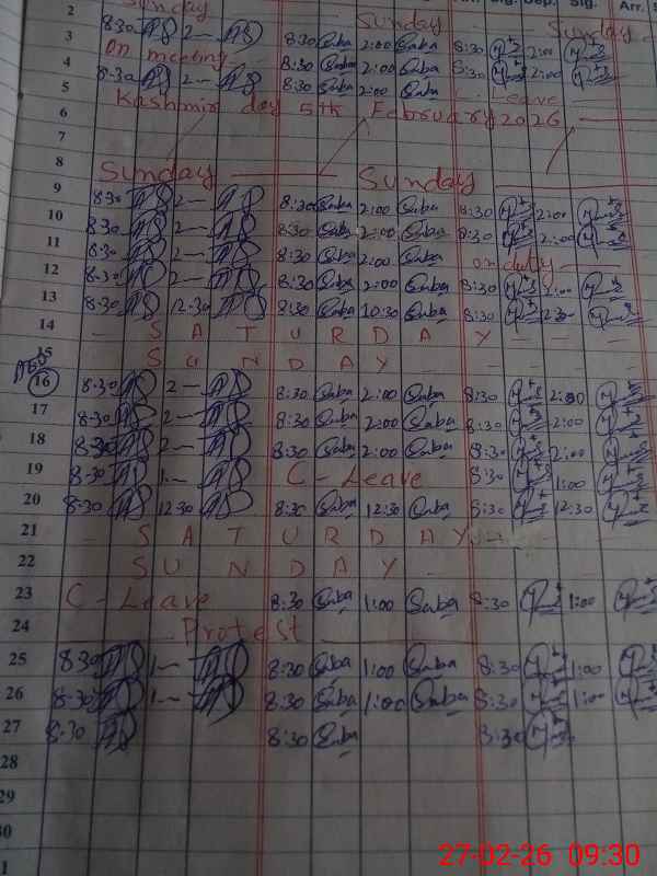 | Monitoring Date: 27-02-2026 | Start Time: 27-02-2026 09:15 AM | End Time: 27-02-2026 09:42 AM | Name of MEA: Ab**** Ha**** | |