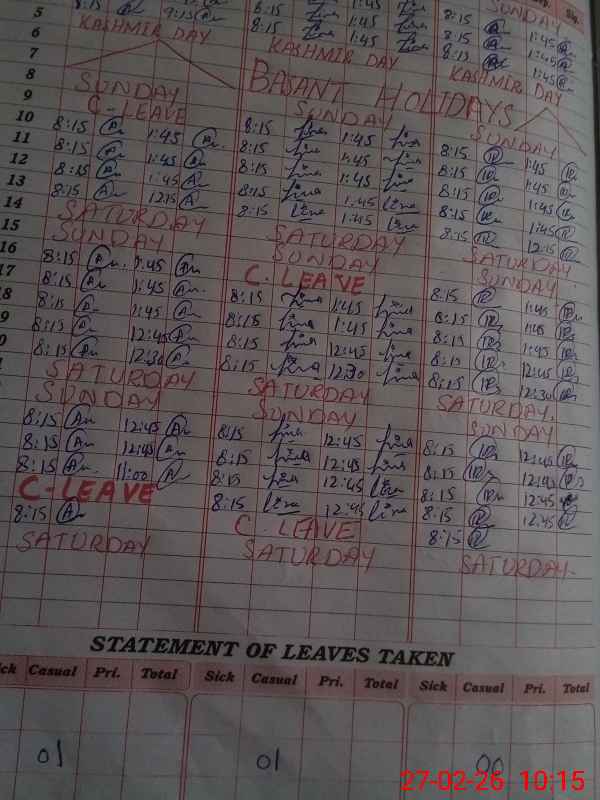 | 37**** | Ta**** Kh**** | PST Science/Maths | Regular | 0 | 0 | 0 | 0 | 0 | 0 | 0 | 0 | 0 | Casual |