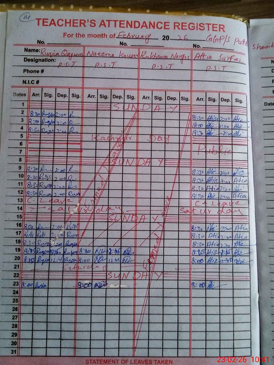 | 32**** | No**** El**** | BOLAVI | Regular | 0 | 0 | 0 | 0 | 0 | 0 | 0 | 0 | 0 | Absent (Un-Authorized) |