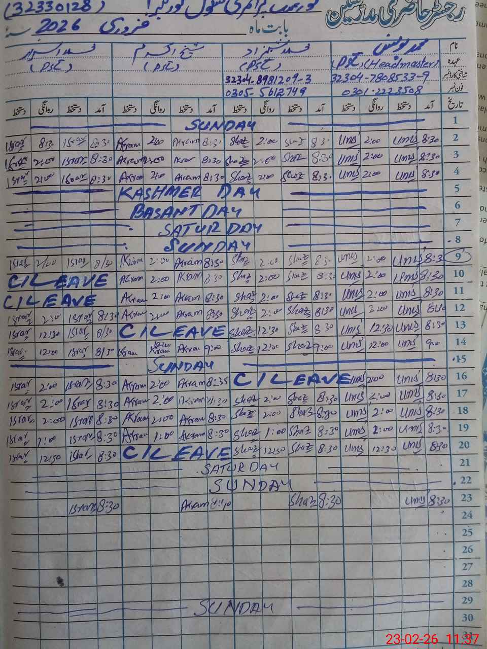 | Name: Mu**** AK**** Designation: (School Headmaster's/Headmistress's) ESE(SC.MATH) Phone/Cell Number: 03**** |