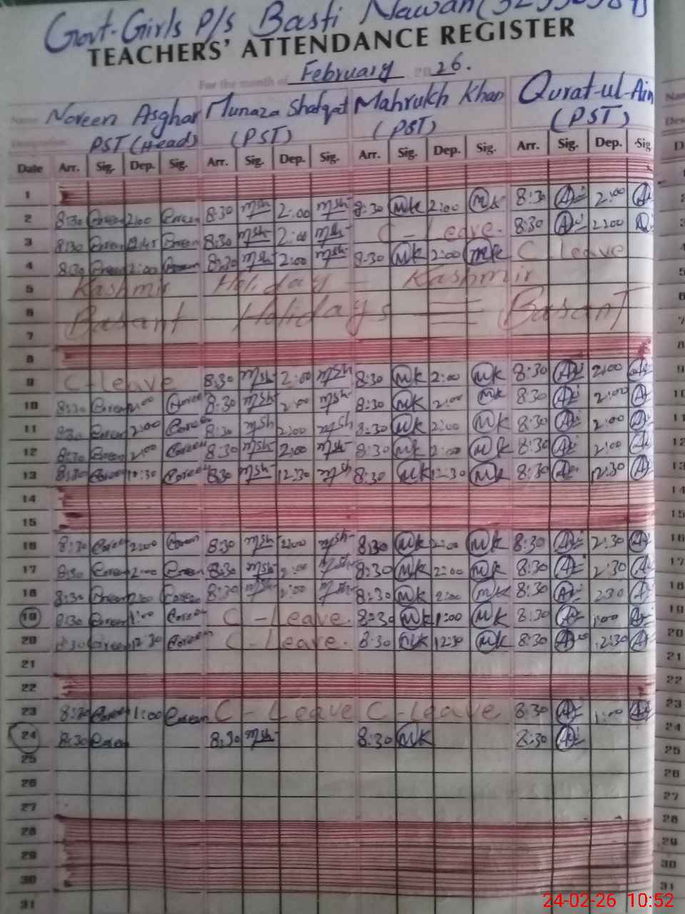 | Leave | Duty | Absent | Maternity | Medical | Ex- Pak |