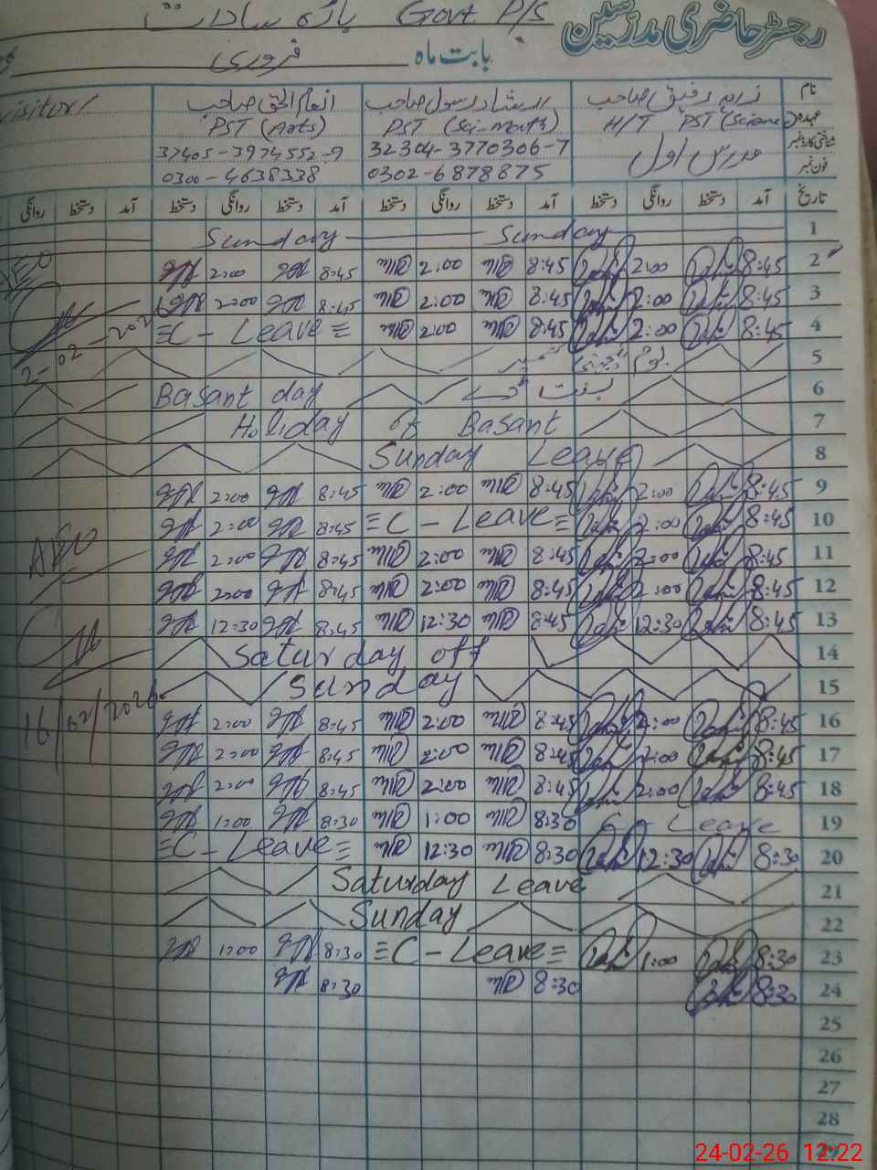 | Name: ZA**** RA**** Designation: (School Headmaster's/Headmistress's) PST Phone/Cell Number: 03**** |