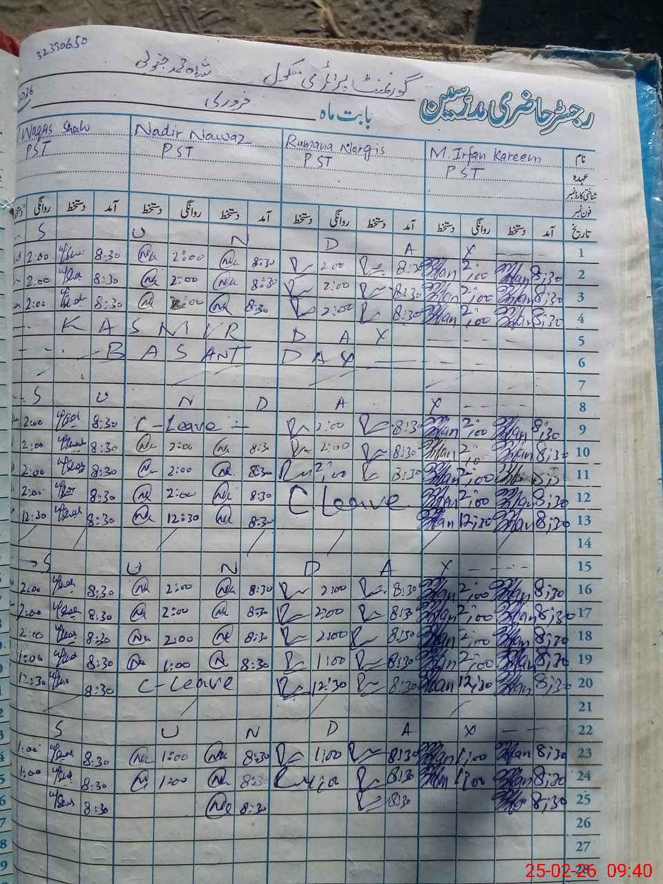 | CNIC | Full Name | Designation | R/C | Absence During Last Calender Month |
