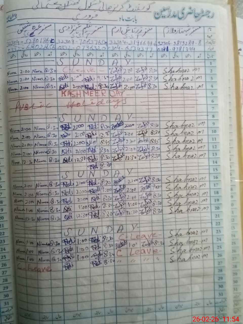 | 32**** | Za**** Ir**** | SST Science | Regular | 0 | 0 | 0 | 0 | 0 | 0 | 0 | 0 | 0 | Casual |