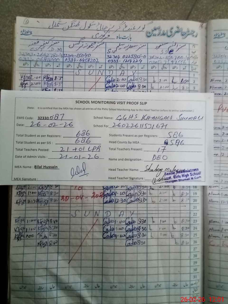 | EMIS Code: 32330087 | Name of School: GGHS KHANGAN SHUMALI | |||