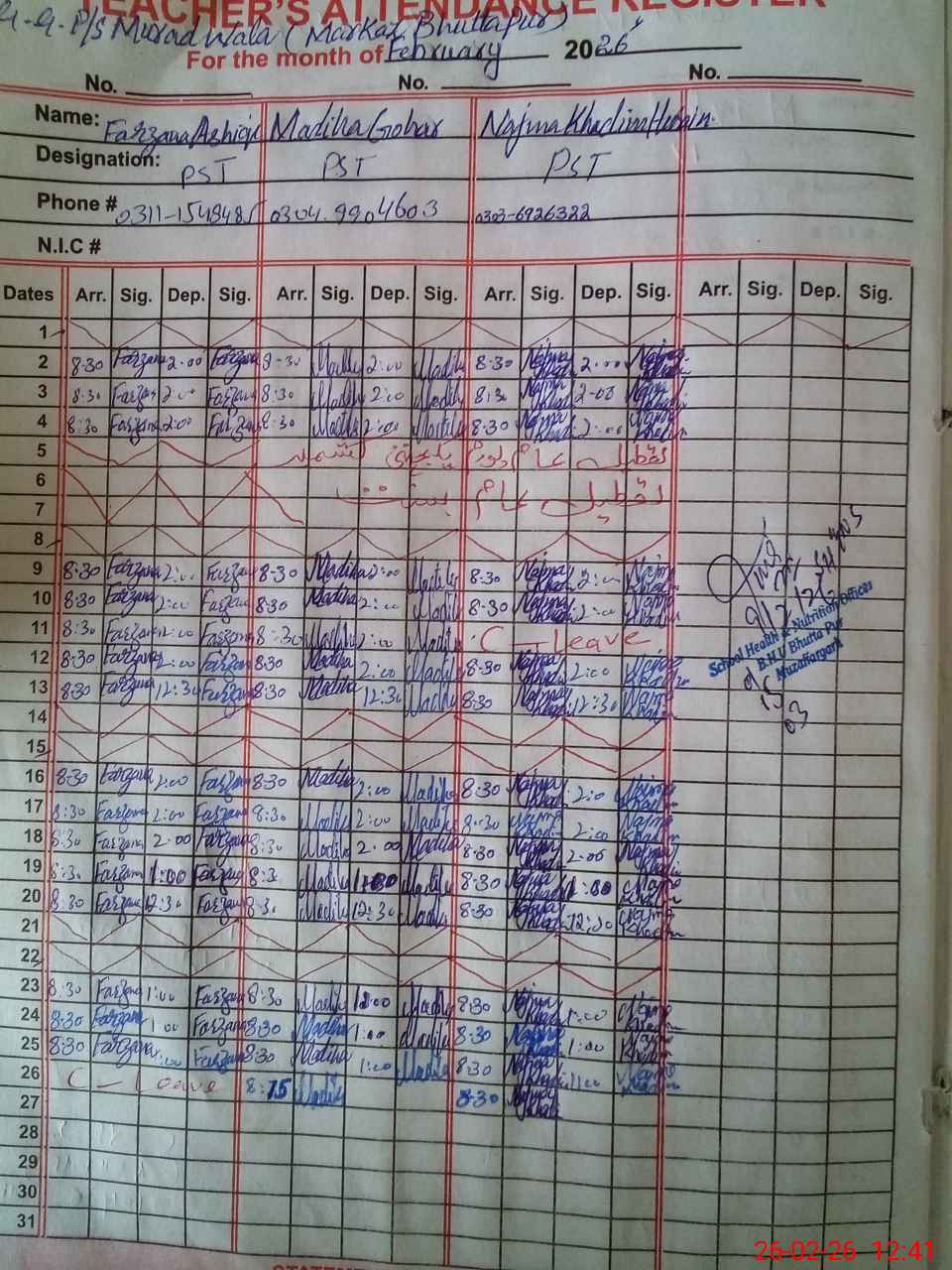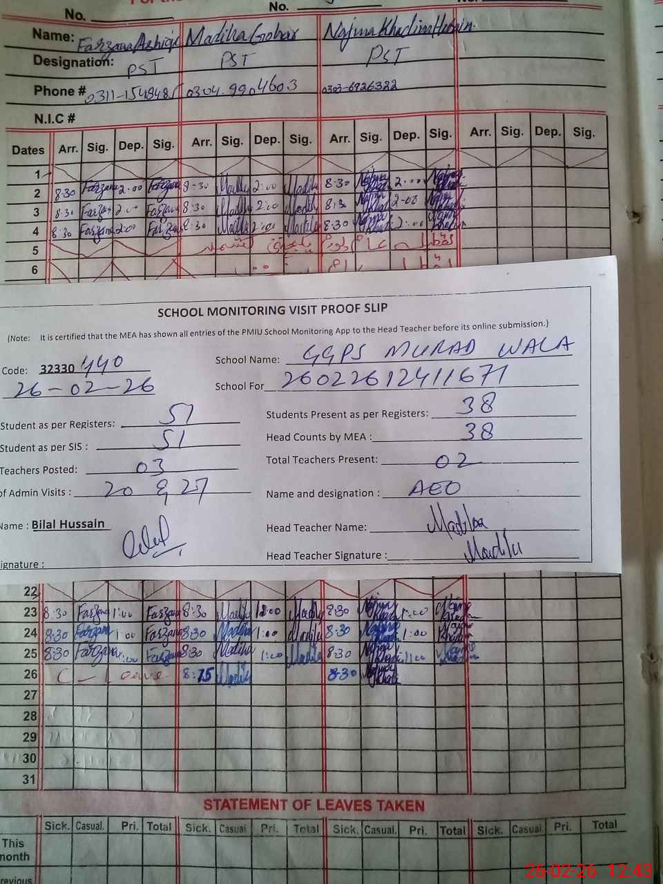 | EMIS Code: 32330440 | Name of School: GGPS MURAD WALA | |||