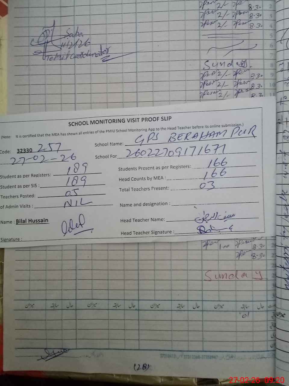 | EMIS Code: 32330257 | Name of School: GPS BERAHAM PUR | |||