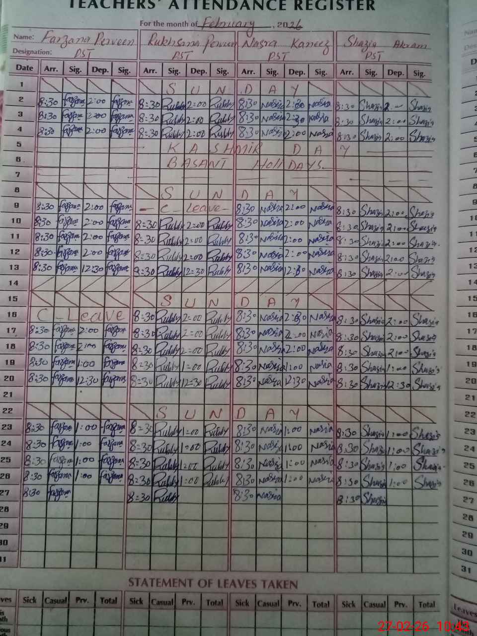 | Leave | Duty | Absent | Maternity | Medical | Ex- Pak |