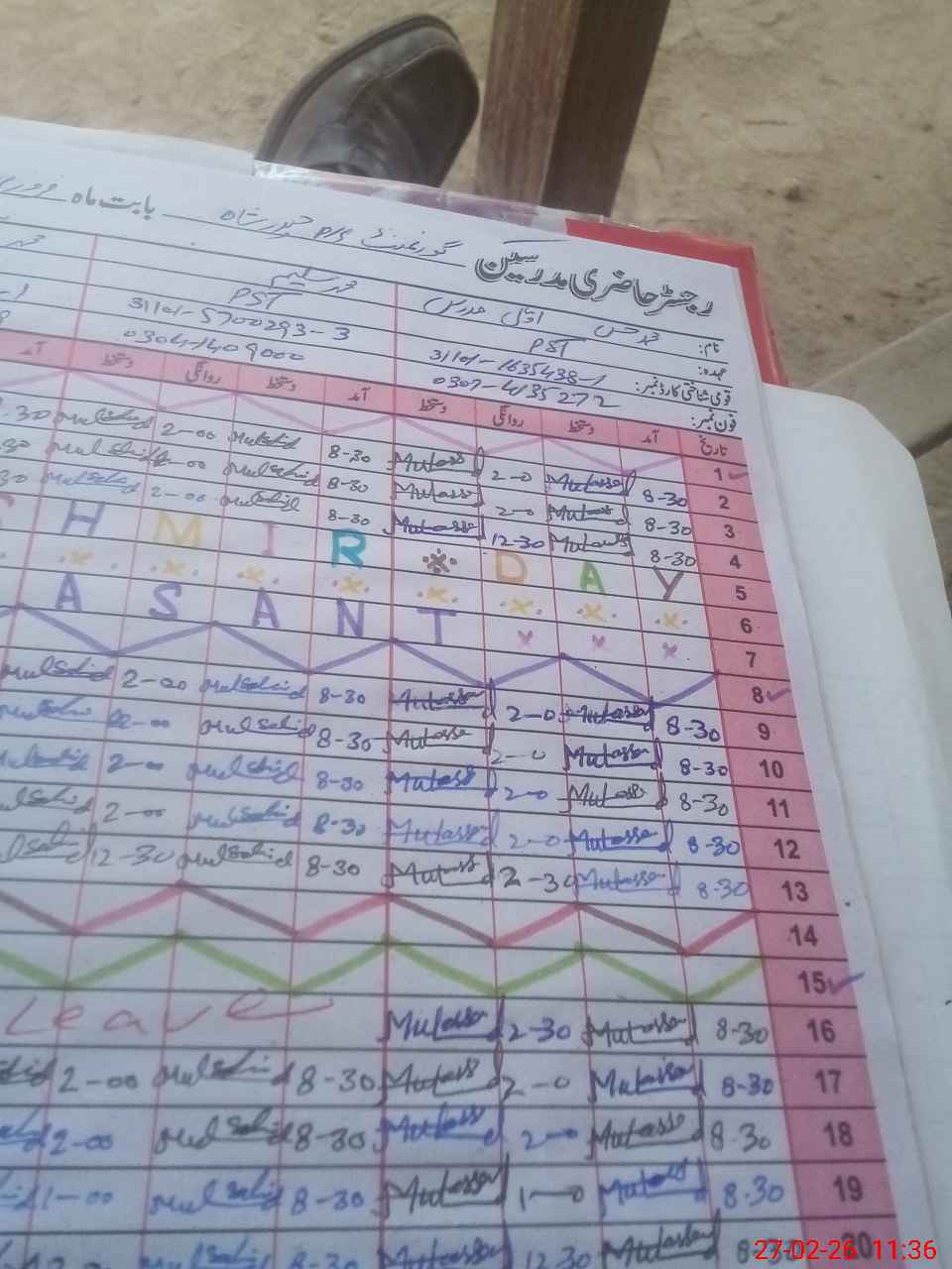 | Name: MU**** HA**** Designation: (School Headmaster's/Headmistress's) PST Phone/Cell Number: 03**** |