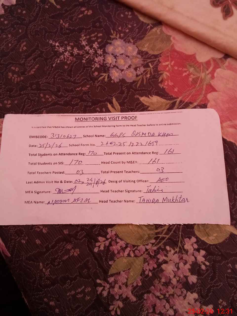 | EMIS Code: 31310627 | Name of School: GGPS QASAIDA KHOO | |||